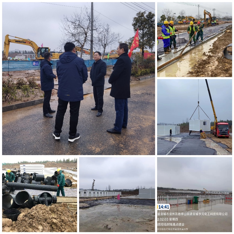 正月初三上午,區(qū)委副書記、區(qū)長俞志剛到宣州區(qū)疫情防控臨時隔離點工地現(xiàn)場督導(dǎo)項目建設(shè),副區(qū)長汪海洋陪同。俞志剛對項目建設(shè)速度給予充分肯定,向春節(jié)期間冒著雨雪天氣加班加點的項目建設(shè)者表示親切的慰問。上午,現(xiàn)場工人正在對路面沉降縫進行切割、對積水較多區(qū)域進行排水,為下一步吊裝工作做好準備。截止目前,臨時隔離點北邊庫房、醫(yī)護辦公、醫(yī)護宿舍合計36套已吊裝結(jié)束,即將完成22套準備區(qū)用房吊裝工作。