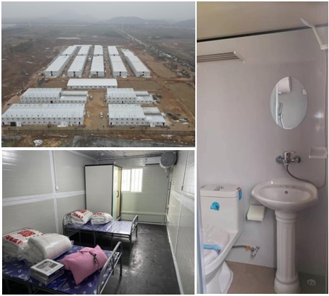 “越是艱難,越要咬緊牙關(guān)挺過去”,項目現(xiàn)場負(fù)責(zé)人說。在施工、采購、調(diào)度各環(huán)節(jié),國資集團(tuán)不斷創(chuàng)新,會同各參建單位想盡一切辦法為項目建設(shè)提速,截至2月19日,準(zhǔn)備區(qū)折疊房、緩沖區(qū)活動板房、隔離區(qū)打包房、污水處理點用房已安裝完成,室內(nèi)水電、家具、電器已完成90%,室外附屬工程已基本完成。已建成的折疊房和打包房,配備了空調(diào)、熱水器、淋浴房、馬桶、洗手臺、床、被單、棉被、枕頭、桌子、凳子等,必需的生活配套一應(yīng)俱全。